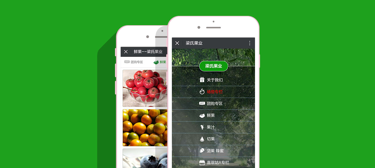 梁氏果業微商城建設,網頁設計,前端及程序制作,手機網站制作