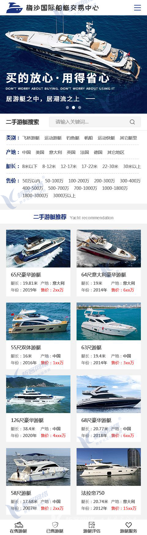 梅沙國(guó)際船艇交易中心的總部位于深圳鹽田區(qū)大梅沙,業(yè)務(wù)包含常規(guī)游艇買賣、托管、售后維修保養(yǎng)、證件辦理,以及對(duì)新艇項(xiàng)目整個(gè)建造過(guò)程的監(jiān)督管理。在游艇銷售領(lǐng)域十三年的摸索中,梅沙國(guó)際船艇交易中心在深圳惠州各大游艇會(huì)開(kāi)設(shè)了四家門店,形成了立足深圳,面向全國(guó)的游艇營(yíng)銷網(wǎng)絡(luò),連續(xù)數(shù)年保持全國(guó)游艇買賣市場(chǎng)領(lǐng)先地位。