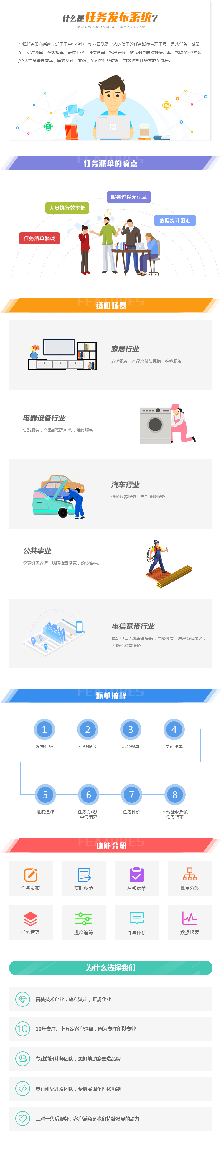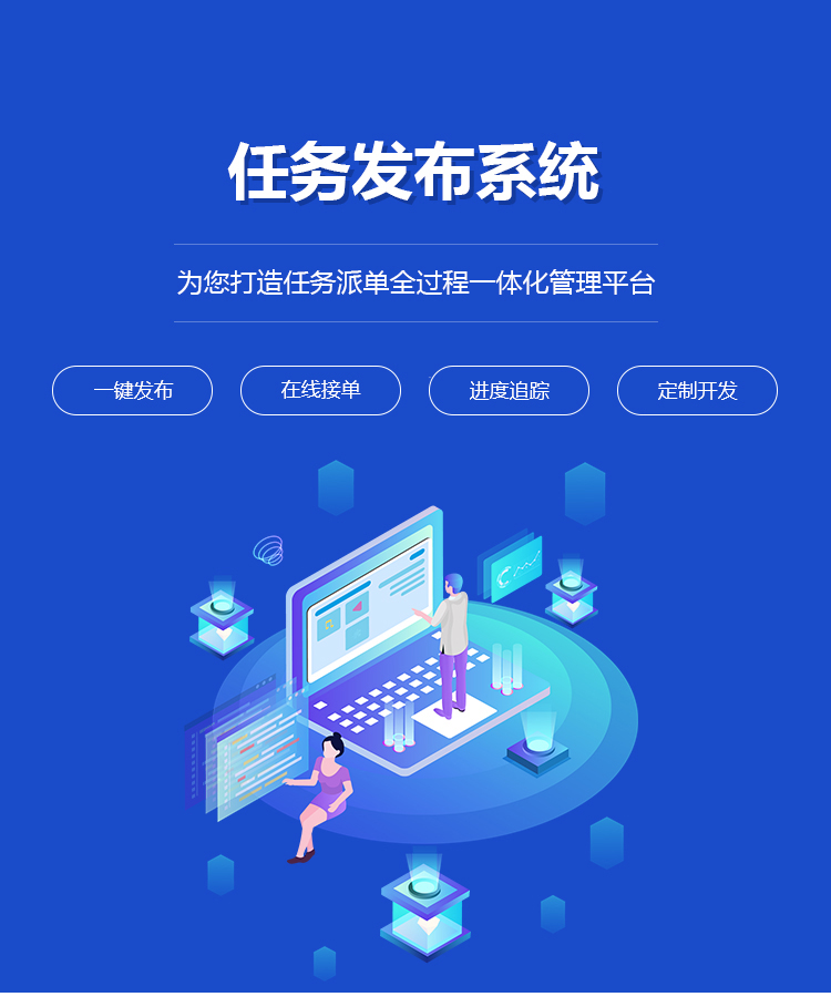 在線任務(wù)發(fā)布系統(tǒng),適用于中小企業(yè)、創(chuàng)業(yè)團隊及個人的使用的任務(wù)派單管理工具,是從任務(wù)一鍵發(fā)布、實時派單、在線接單、進度上報、進度查詢、客戶評價一站式的互聯(lián)網(wǎng)解決方案,幫助企業(yè)/團隊/個人提高管理效率、掌握及時、準(zhǔn)確、全面的任務(wù)進度,有效控制任務(wù)實施全過程。