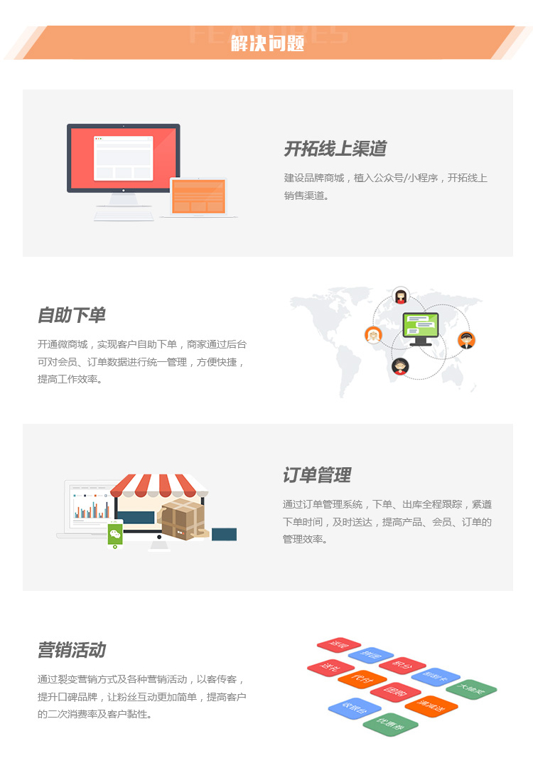 建設品牌商城,植入公眾號/小程序,開拓線上銷售渠道。