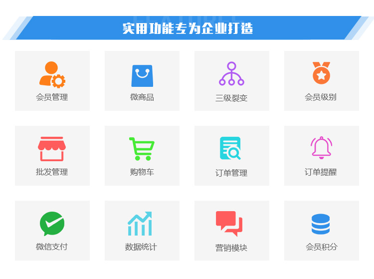 開通微商城,實現客戶自助下單,商家通過后臺可對會員、訂單數據進行統一管理,方便快捷,提高工作效率。