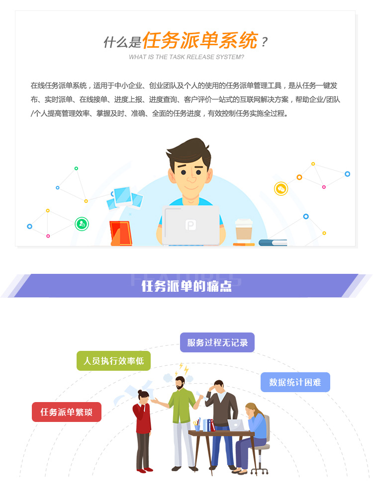 1、在線任務派單系統,適用于中小企業、創業團隊及個人的使用的任務派單管理工具,是從任務一鍵發布、實時派單、在線接單、進度上報、進度查詢、客戶評價一站式的互聯網解決方案,幫助企業/團隊個人提高管理效率、掌握及時準確、全面的任務進度,有效控制任務實施全過程。