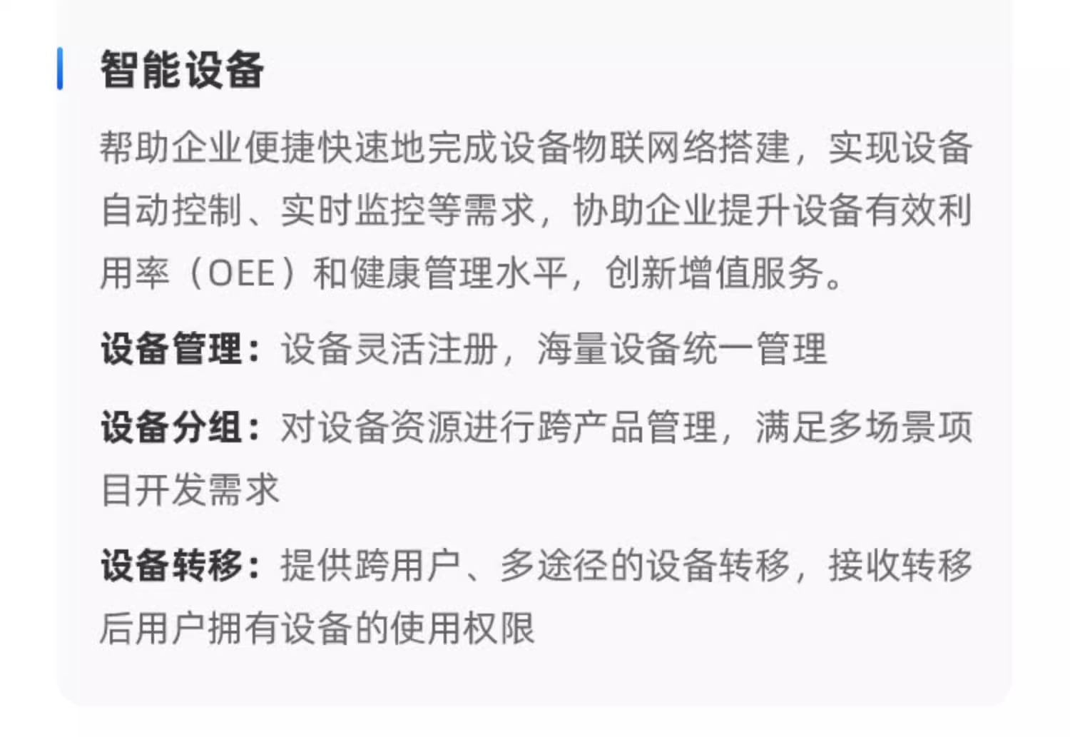 幫助企業(yè)便捷快速地完成設(shè)備物聯(lián)網(wǎng)絡(luò)搭建,實(shí)現(xiàn)設(shè)備自動(dòng)控制、實(shí)時(shí)監(jiān)控等需求,協(xié)助企業(yè)提升設(shè)備有效利用率(OEE)和健康管理水平,創(chuàng)新增值服務(wù)。