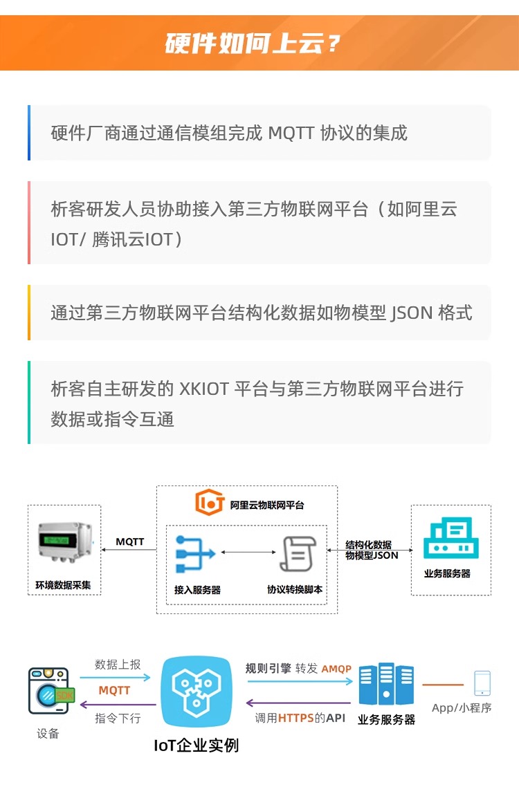 析客自主研發(fā)的XKIOT平臺(tái)與第三方物聯(lián)網(wǎng)平臺(tái)進(jìn)行數(shù)據(jù)或指令互通