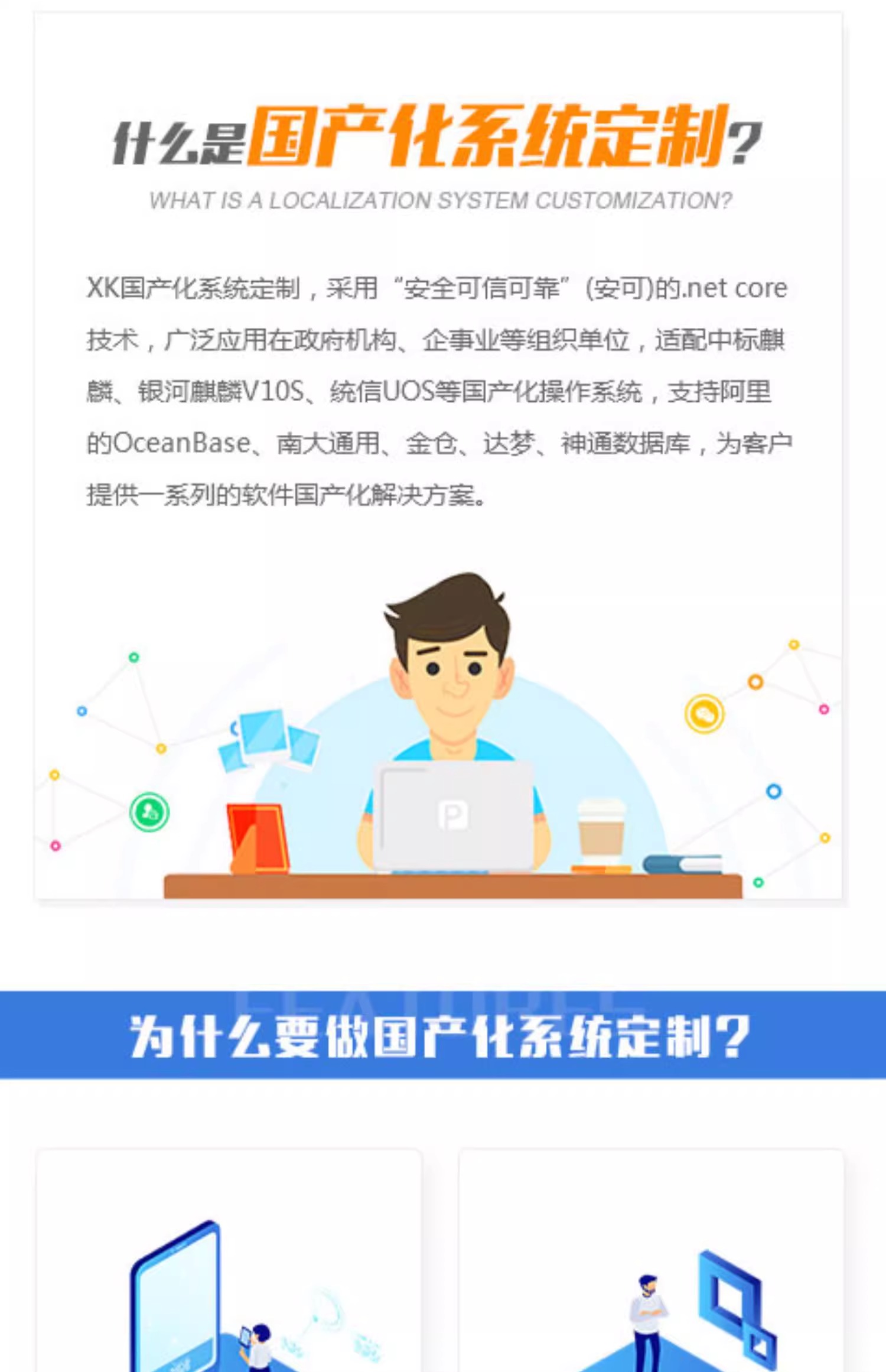 XK國產化系統定制,采用“安全可信可靠”(安可)的.net core技術,廣泛應用在政府機構、企事業等組織單位,適配中標麒麟、銀河麒麟V10S、統信UOS等國產化操作系統,支持阿里的OceanBase、南大通用、金倉、達夢、神通數據庫,為客戶提供一系列的軟件國產化解決方案。