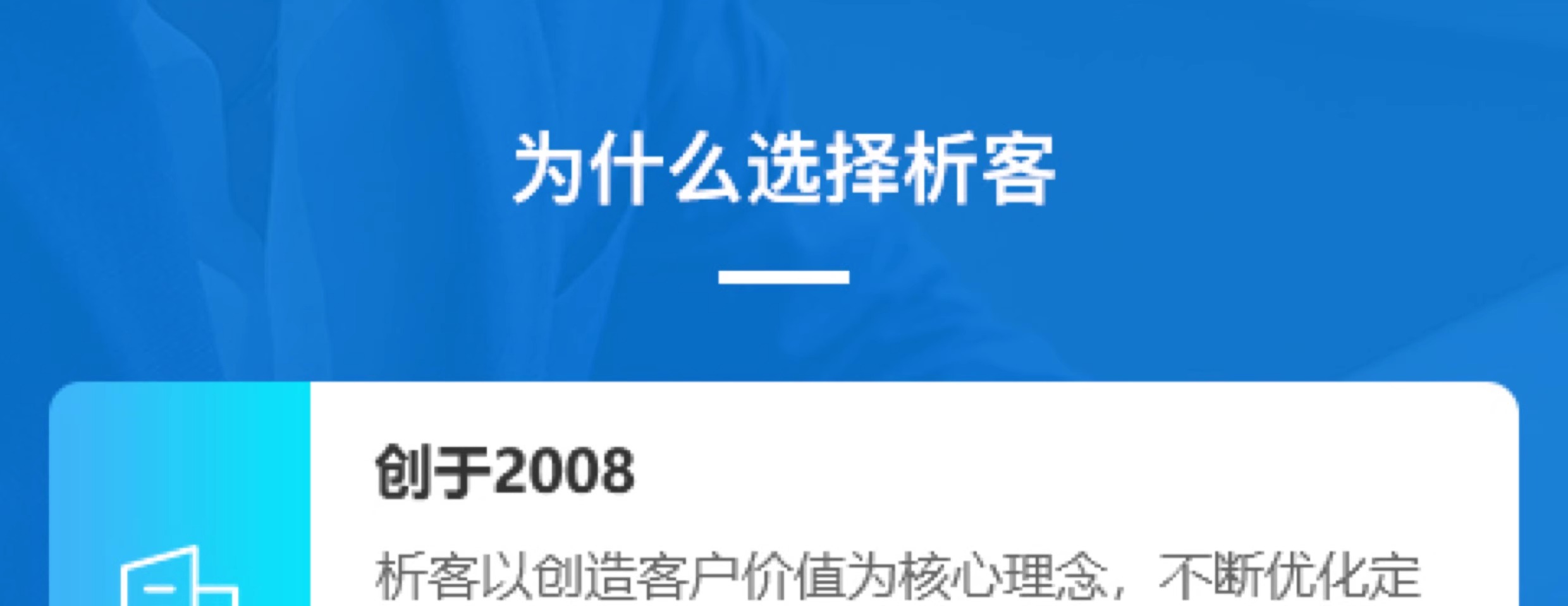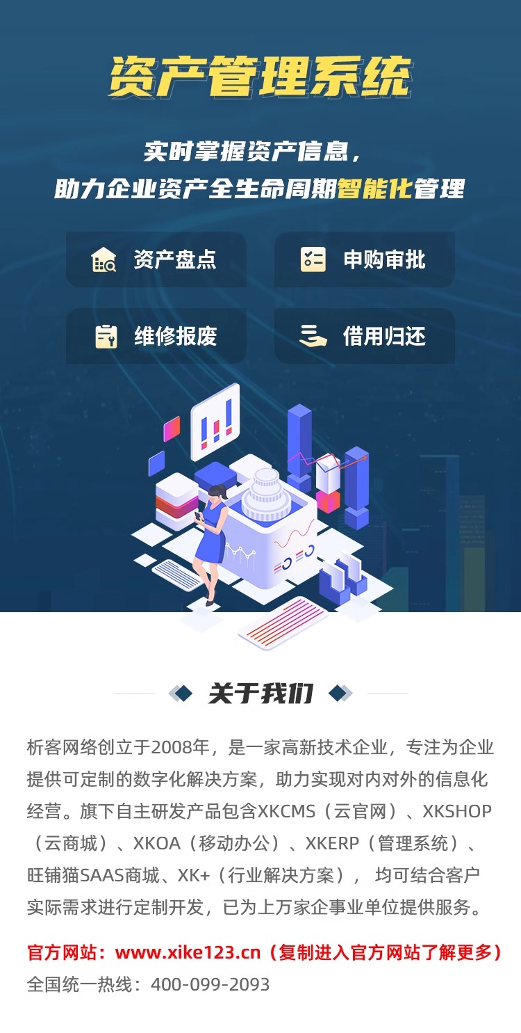 析客網絡創立于2008年,是一家高新技術企業,專注為企業提供可定制的數字化解決方案,助力實現對內對外的信息化經營。旗下自主研發產品包含XKCMS(云官網)、XKSHOP(云商城)、XKOA(移動辦公)、XKERP(管理系統)、旺鋪貓SAAS商城、XK+(行業解決方案), 均可結合客戶實際需求進行定制開發,已為上萬家企事業單位提供服務。