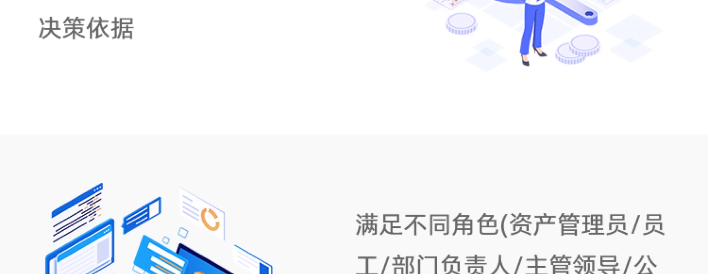 滿足不同角色(資產管理員/員工/部門負責人/主管領導/公司負責人/),涵蓋單位資產管理所需各功能