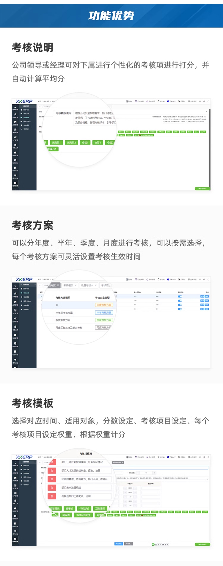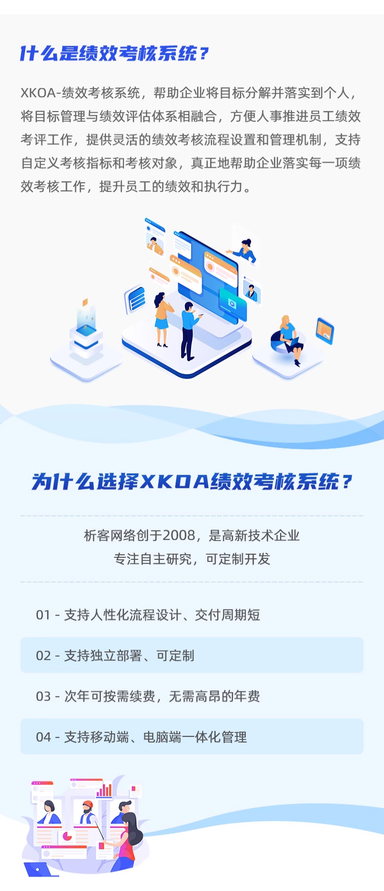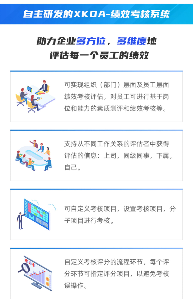 XKOA-績效考核系統,幫助企業將目標分解并落實到個人,將目標管理與績效評估體系相融合,方便人事推進員工績效考評工作,提供靈活的績效考核流程設置和管理機制,支持自定義考核指標和考核對象,真正地幫助企業落實每一項績效考核工作,提升員工的績效和執行力。